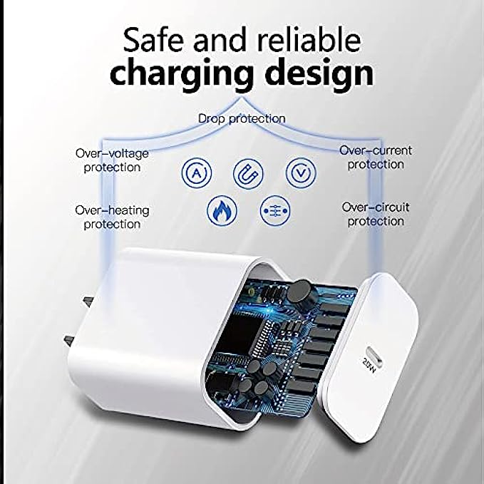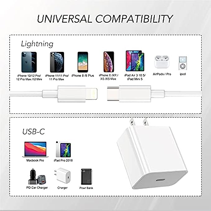 USB C Fast Charger: This Power Delivery Wall Plug with USB C to lightning cable supports a fast charger for latest iPhone 13/iPhone 12/iphone 11, and it can be charger-ed to 50% during 30 minutes. Charging speed is 3 times faster than normal charger.