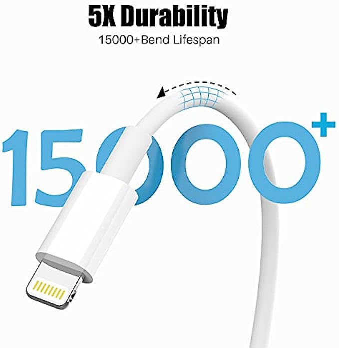 【Ultimate Durability】: iPhone Charger Designed and built with premium materials, it has been tested to withstand at least 15000 cycles of 95 degree bend and 10000 plugging and unplugging lifespan which is 12 times stronger than original device cables.