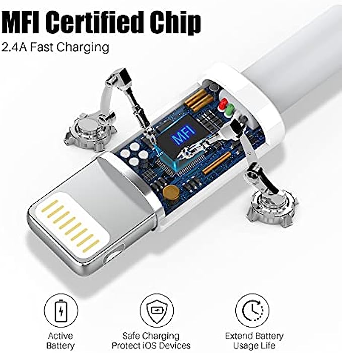 【MFi Certified iphone charger】: Each cable contains an authorization chip issued to ensure 100% compatibility with iPhone.ensures that your lightning devices are loaded and charge safely and faster at maximum speed.