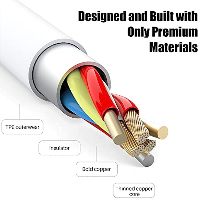 【Charge & Sync 】: The Apple MFi Certified Chip Ensures, The iPhone charging cable is composed of high-quality copper wires, stable current protection, automatic switching and battery protection, which can accept 2.4A current for fast charging and 480 Mbps/s fast data transmission.