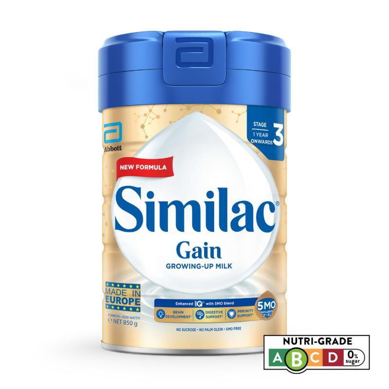 [Bundle of 3] Similac Gain 5MO Stage 3 Growing-Up Baby Milk Powder Formula 850g (1 year onwards)