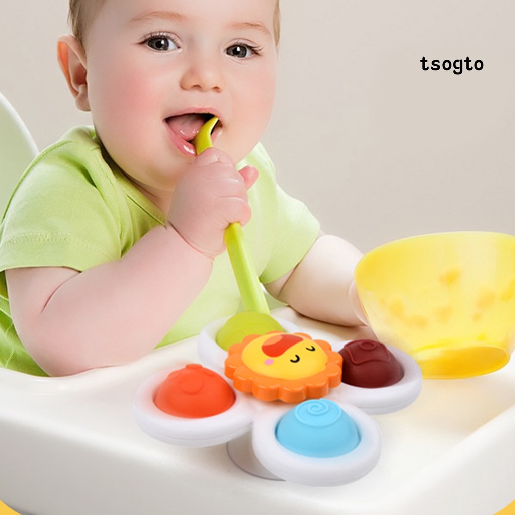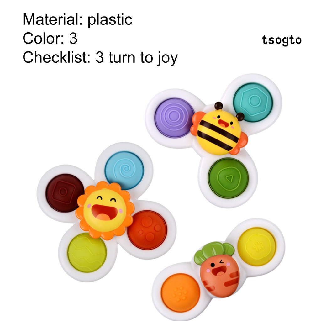 [Ts] 3Pcs Baby Educational Toys Soft Bobble Design Tactile Stimulation Safe Spin Sucker Spinning Top Toys for Baby Supplies