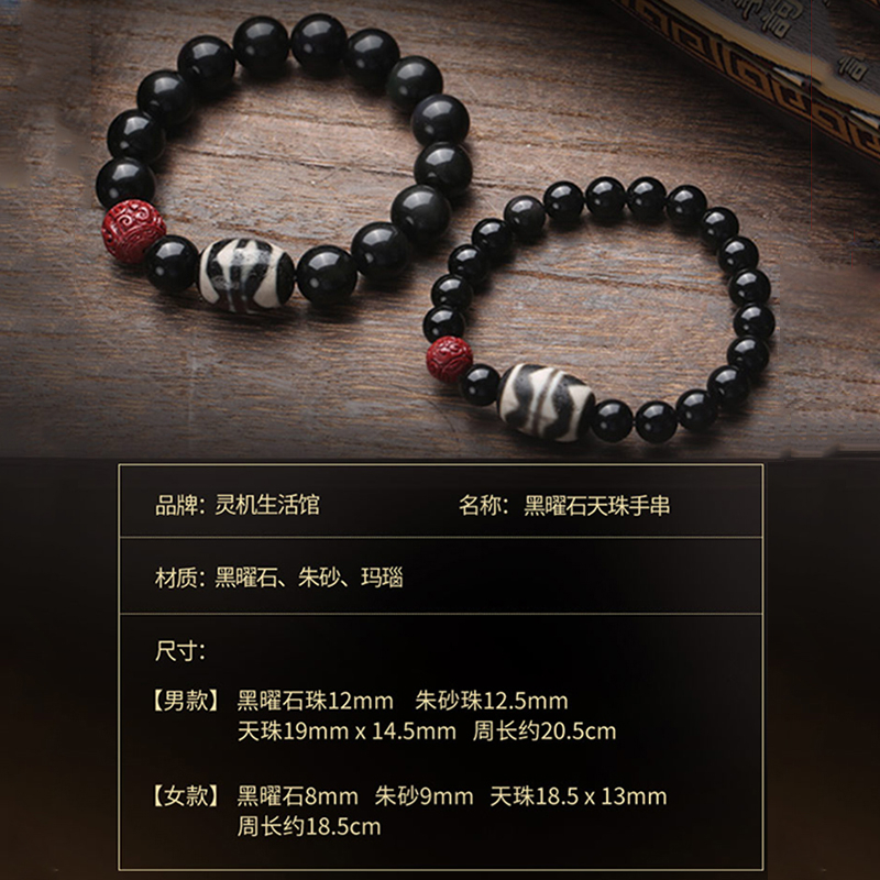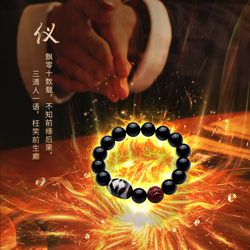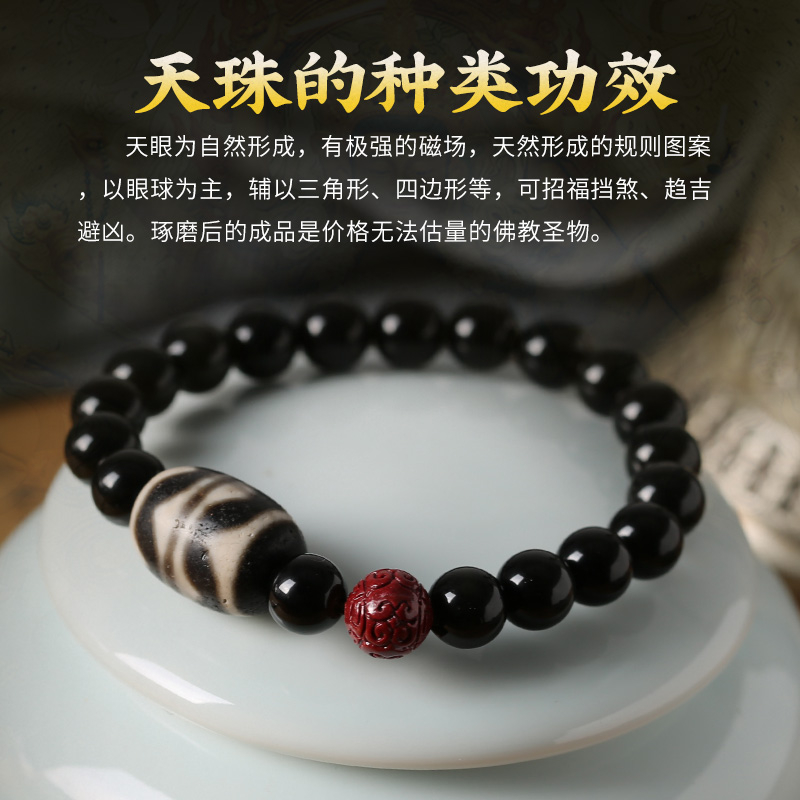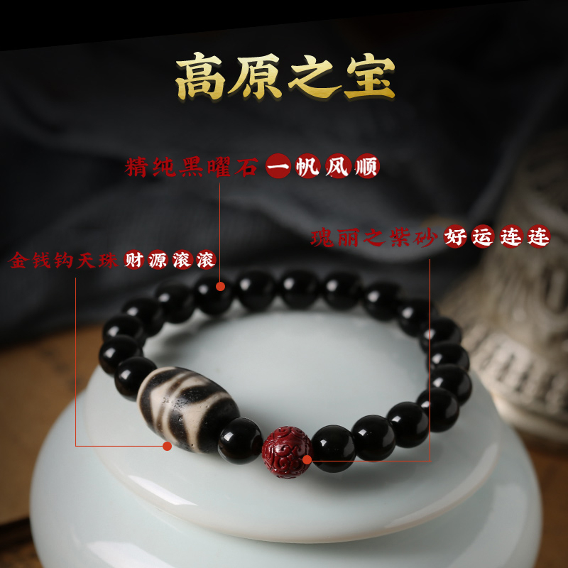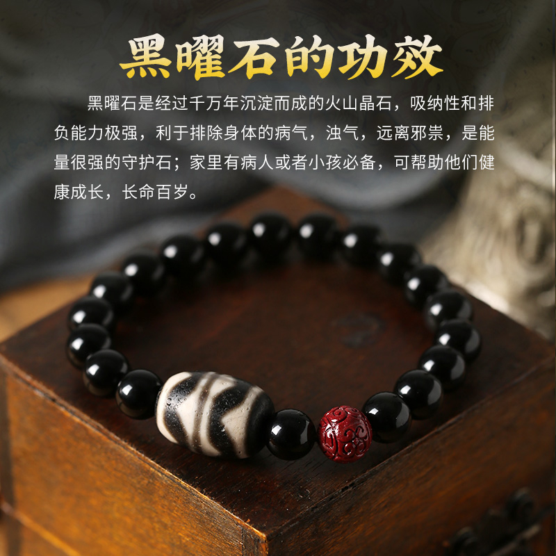 【藏传佛教 开光正品】天然天珠 黑曜石手串 gZi Beads Bracelet 辟邪挡灾 消灾解难 脱离贫穷 消除穷根 招财纳福 吉祥如意 平安健康 风水手链 Fengshui ornaments