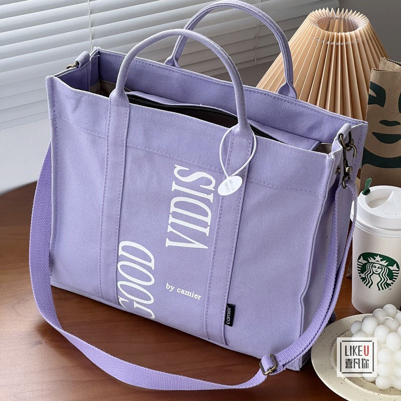 【Any 2 at $45.99】Original Design Japanese Letter Commuter Thickened Canvas Tote Bag Leisure Art Student Simple One Shoulder Handbag