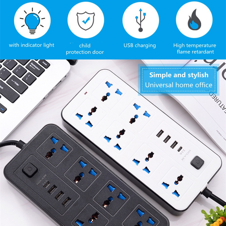 ?Bundle of 2?Power Socket Multifunctional With USB Pd Port, Fast Charging Extension Cable, Power Adapter A37