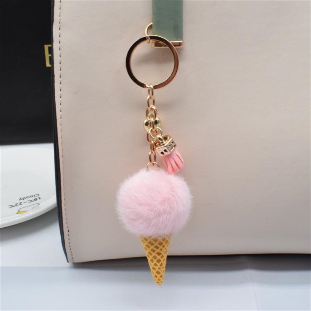 1pc Cute Mini Ice Cream Pom Pom Keyring With Tassel Fashion Student Fluffy Velvet Plush Keychain For Girls Bag Decoration Gift