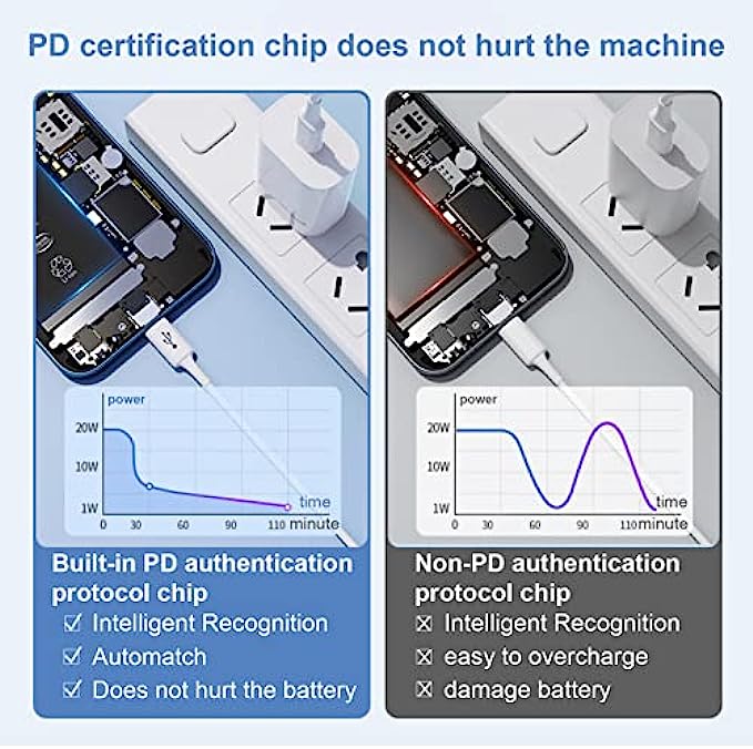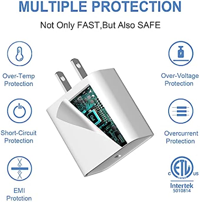 【Safety Protection】With built-in intelligent chip,USB PD fast power adapter provides over-current, over-voltage,over-heat and short-circuit protection for your devices to ensure safer charging.