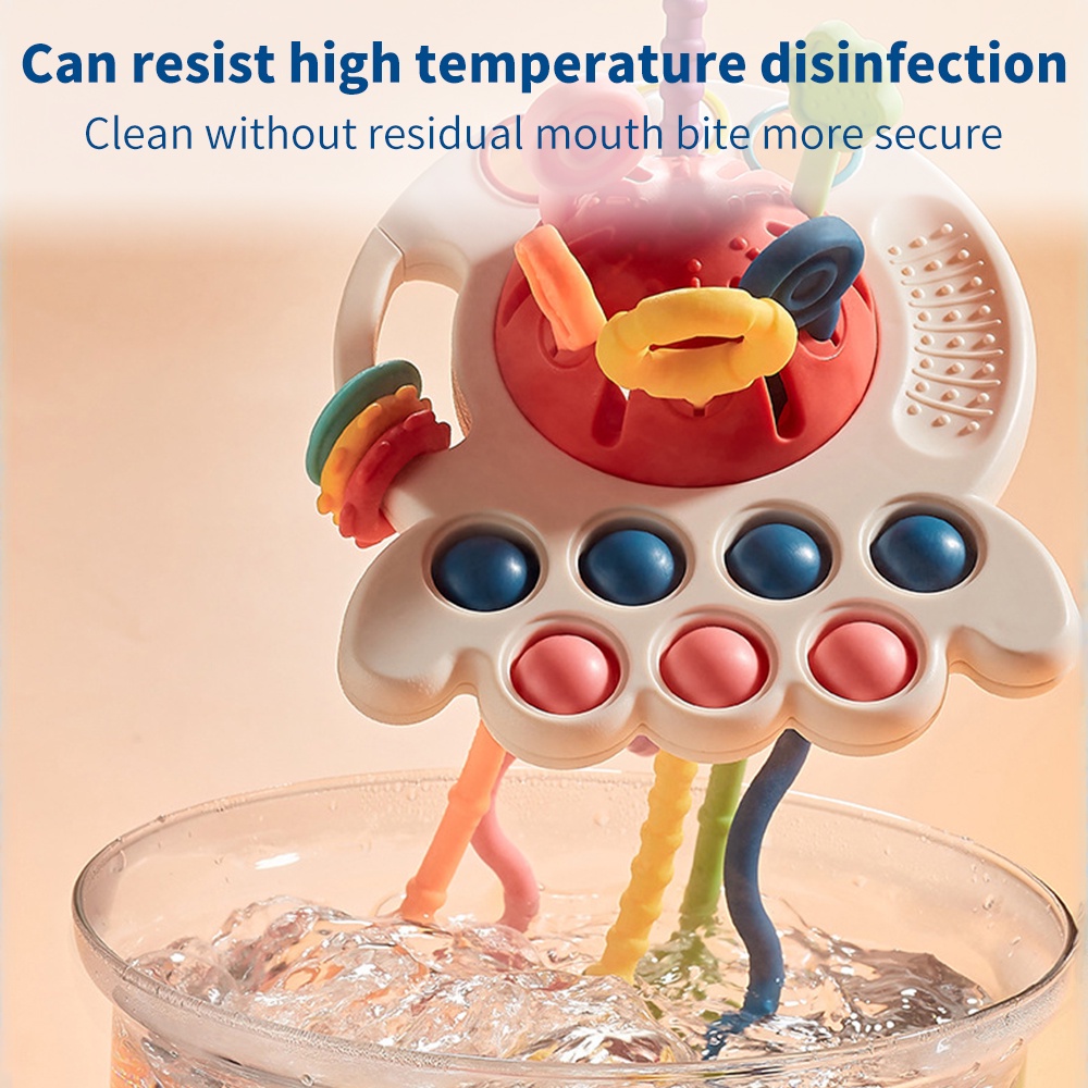 3 In 1 Baby Montessori Pull String Sensory Toys 18M+ Silicone Teething Activity Toy for Toddler Finger Grasp Training