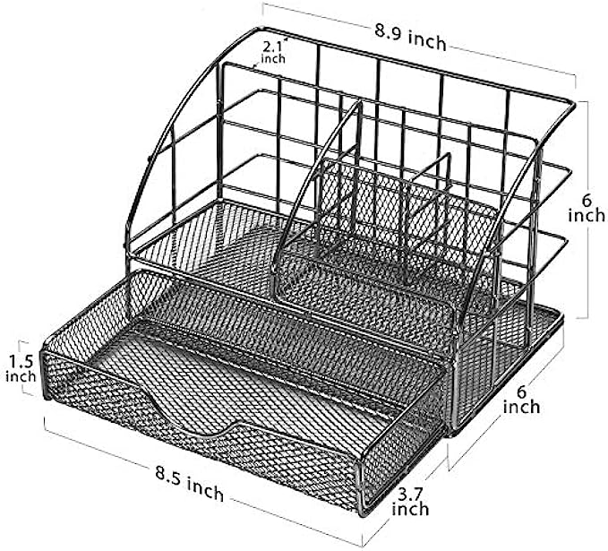 EASY ACCESS: Mesh design allows you to easily find anything you need. Our desk organizer’s pull-out drawer slides in and out smoothly and effortlessly upon tug. The office desk organizer comes fully assembled; just unbox and go. Having a tidy desk makes you work twice as fast and helps you become more creative throughout the day!