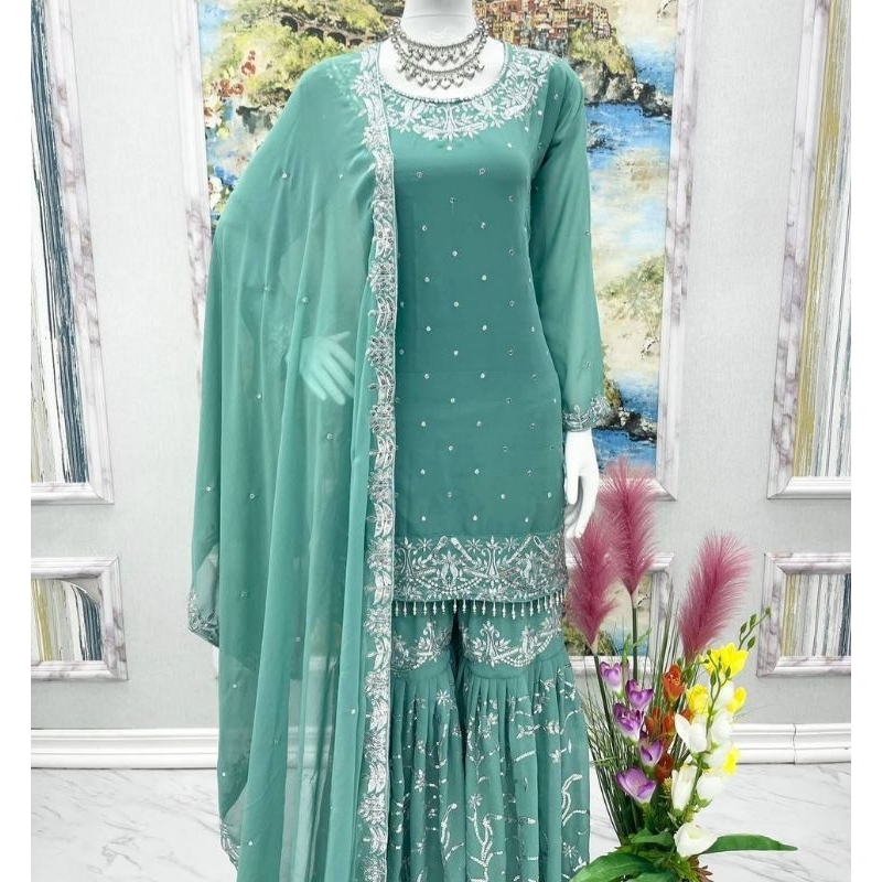 Added new colours *Ready to wear* -3 piece set (kurti+Plazzo+dupatta) designer sharara suit