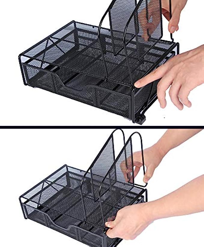 LARGE CAPACITY AND STABLE: the desk organizer is made of steel, it is more stable than normal desk organization. It is convenient to arrange documents, paper, file, folder in one place for quick and easy access
