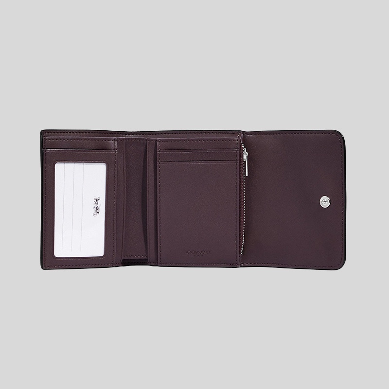 Coach Small Trifold Wallet In Blocked Signature Canvas Graphite Black CE930