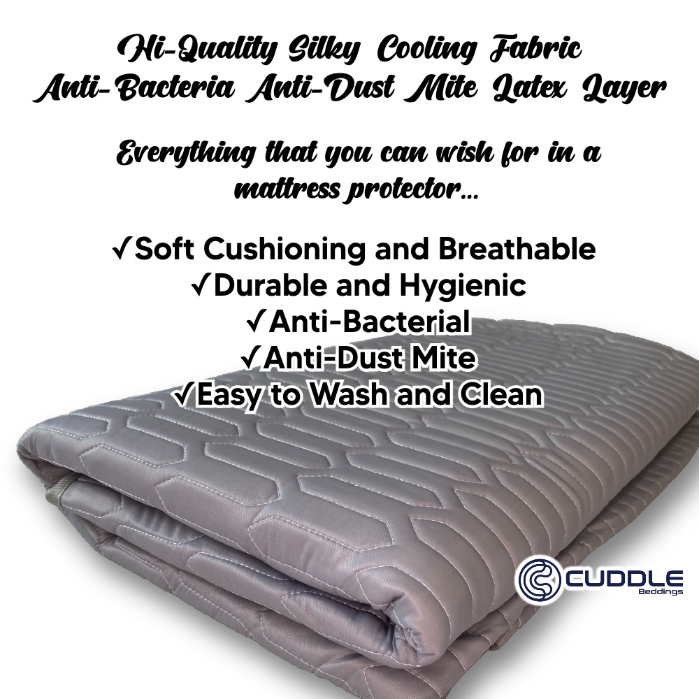 Cuddle™ Silky Cooling Mattress Protector /Cool Lyocell Fabric /Latex Layer/ Anti Bacteria/ Anti Dust Mite