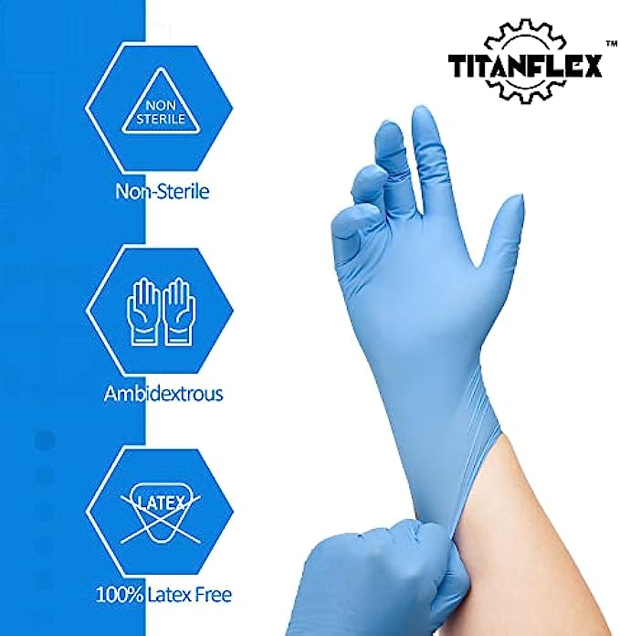 • 6-mil HEAVY DUTY: Our thick nitrile disposable gloves are chemical & puncture-resistant, providing a higher level of hand protection against liquids, greases, & sharp objects. The textured finish provides slip resistance in wet or dry conditions.