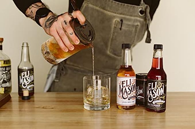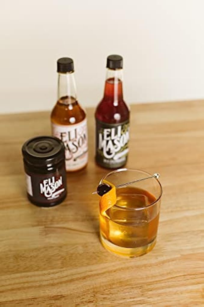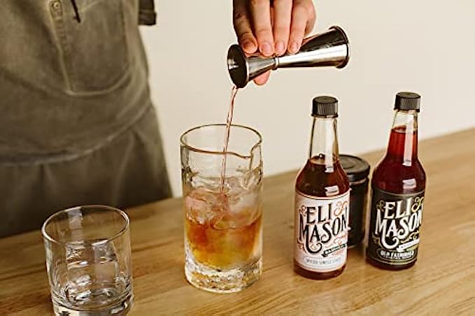 ?Comes with one 10 oz. bottle of Old Fashioned mixer + one 10oz. bottle of Spiced Simple Syrup + stainless steel 1oz/2oz jigger + 6-count silicone ice cube mold + 7-inch stainless steel bar spoon