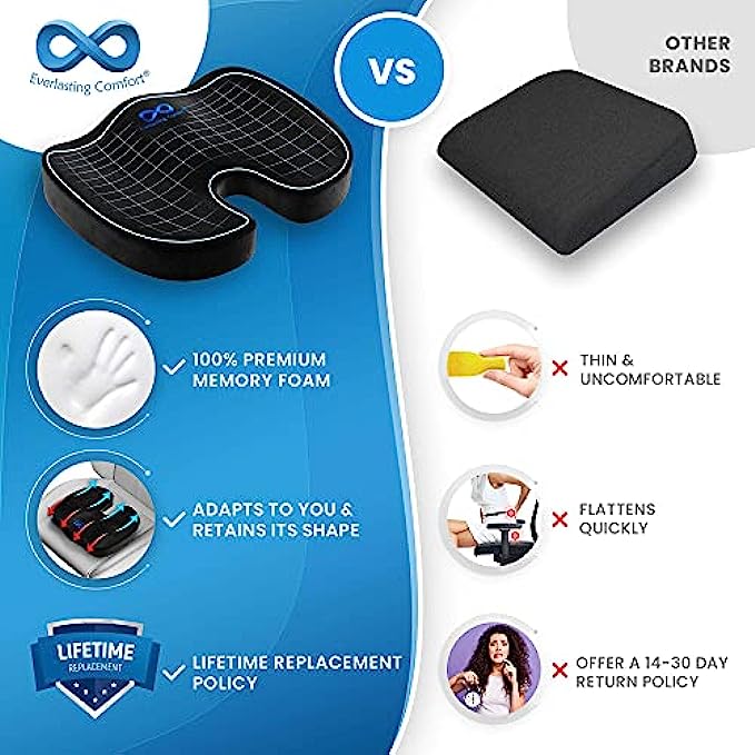Made with Certified Safe Materials, Unlike Other Seat Cushions: In our commitment to providing you with high quality items, our memory foam office chair cushion has been tested by OEKO-TEX to earn their coveted STANDARD 100 label; meaning every component of our butt cushion is certified safe and harmless for human health