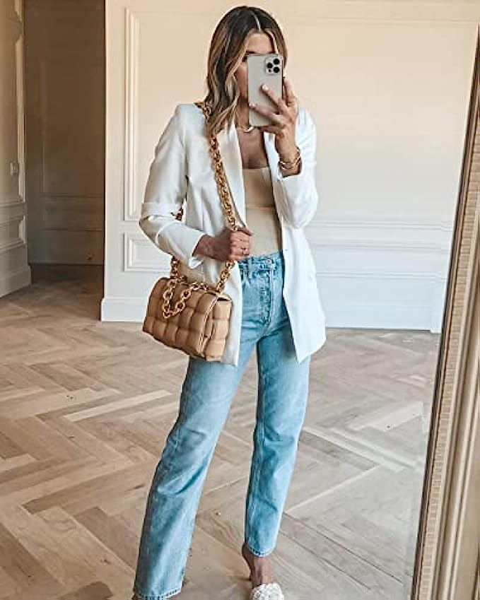 75% Polyester, 20% Viscose, 5% Spandex  Polyester lining Button closure ❤ Material: 75%Polyester+ 20%Viscose+ 5%Spandex,Soft fabric. This business blazer comes with a full lining. Soft and Comfortable to Wear ❤ Features: Basic lapel collar blazer jacket for women. Liner nor shoulder pads/ Button closure/ A single front button design/ Two functional flap pockets, perfectly carrying some necessity, or nailing a chic look ❤ Occasion: Suitable for all year round. Great for casual, formal, business wear and other special events, business outfit, work office style, leisure time, holiday, vacation and so on