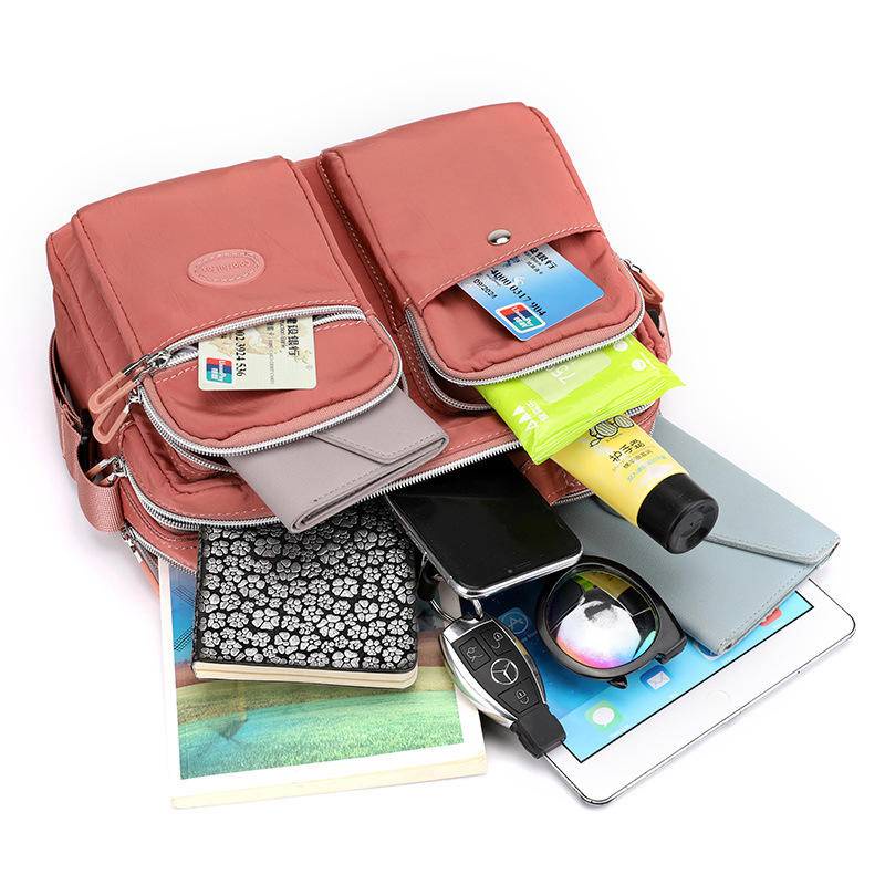 Multifunctional Waterproof Tote Handbag Multi-Layer Storage Design Large Capacity Fashion Shoulder Bag Water-Repellent Nylon Fabric Cross-Body Bag Outdoor Leisure Commuter Busi