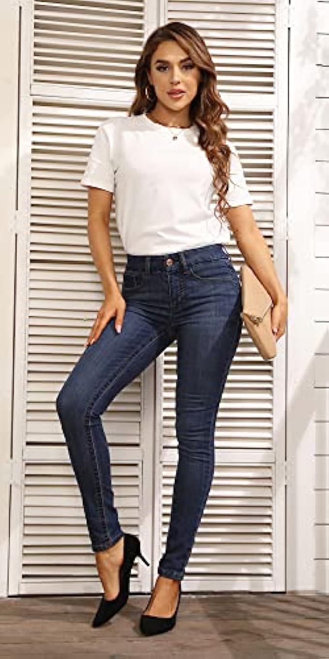 80% Cotton, 10% Modal, 9% Polyester, 1% Elastane Imported Button closure Wash cold, Wash Less Frequently, Do Not Use Dryers. Our high rise on-trend jeans in a mom fit that's more relaxed through thigh and calf, and tapers at the ankle. Featuring a light indigo wash and frayed hem. Soft cotton-blend denim, with comfortable stretch to flatter all shapes. Ankle length cut, with frayed detail on knee and leg opening create a distressed, lived-in look.