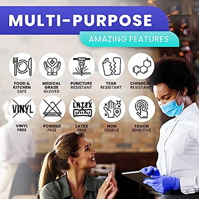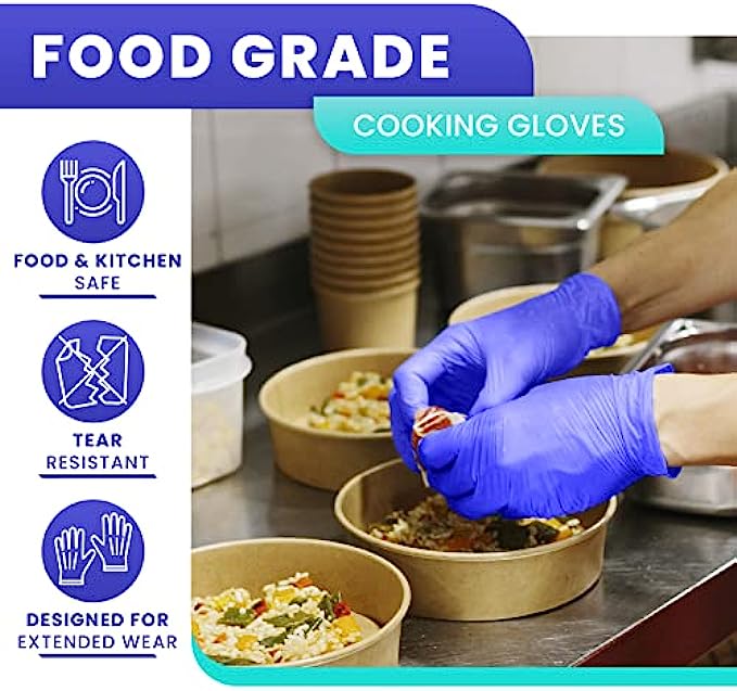 • FOOD & KITCHEN GLOVES: Are your current disposable cooking gloves food safe? Protect yourself and those around you from ingesting some of the harsh and toxic chemicals found in non-safe food prep gloves. Our medical-grade non latex food service gloves are not only chemical safe, but they are also tear and puncture-resistant, protecting your hands from transmitting food-related bacteria while handling raw & unprocessed foods.