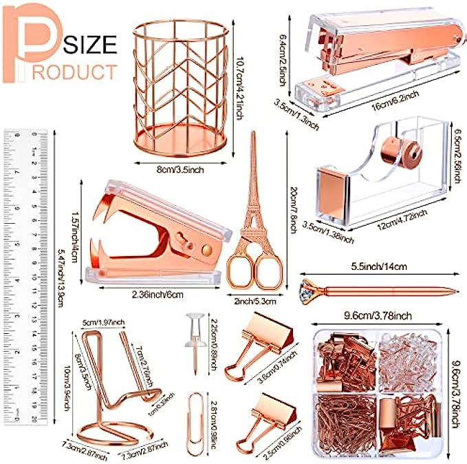 Intimate Combination: you will receive 1 set of desk accessories, including 1 stapler, 1 tape holder, 1 staple remover, 1 pen holder, 1 box of staples, 1 mobile phone holder, 2 pens, 1 ruler, 1 scissors and 1 box of binder clips, sufficient to satisfy your diverse demands