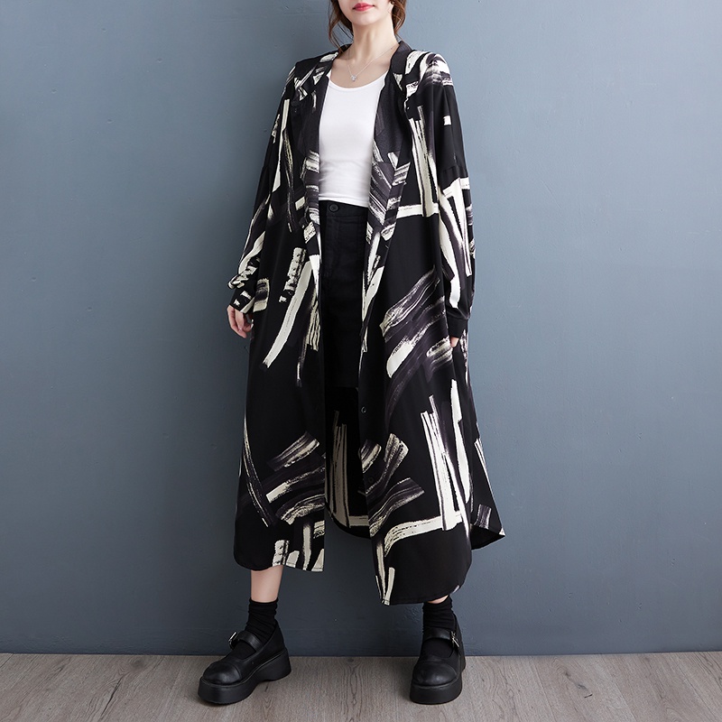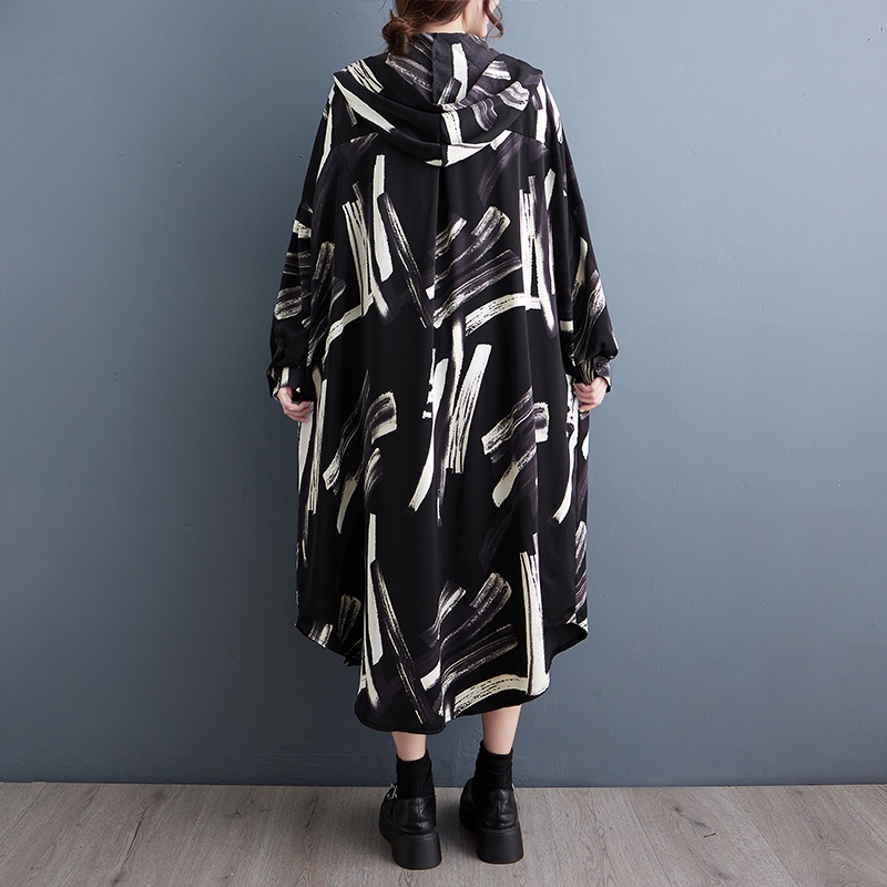Oladivi Fashion Print Long Sleeve Button Dress for Women 2023 Spring Autumn Casual Loose Midi Dresses Oversized Clothing Plus Size Tunic Robe 5869 JM004