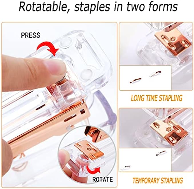 Packing Listing: 1x stapler, 1x staple remover, 1000 x staples, 1 x tape holder, 1 x pen holder, 2 x pens, 1 xscissors, 1 x box of binder clips, 1 x phone holder, ruler, 1 x transparent glue and a box of non-sticky notes; This gold office supplies set can meet your needs in daily life and work, keeping your desk or desk drawer organized.