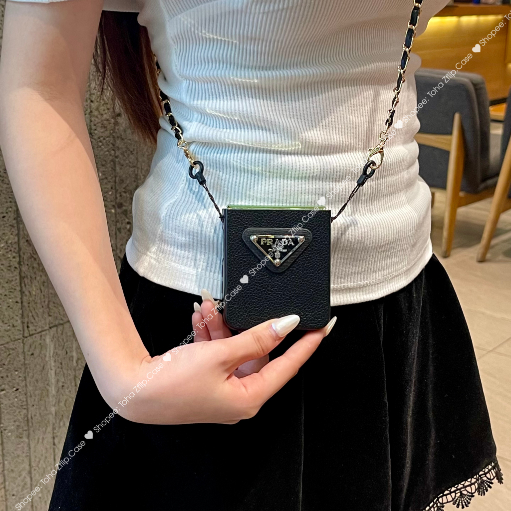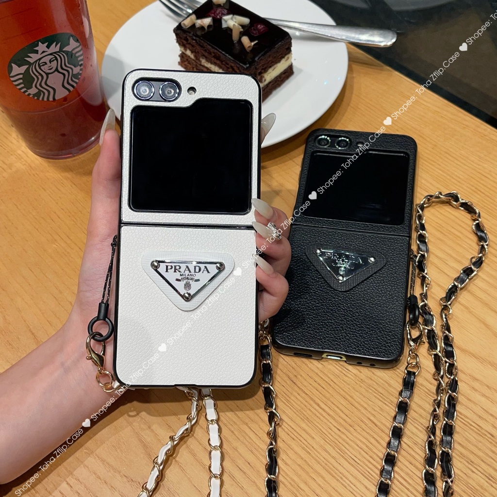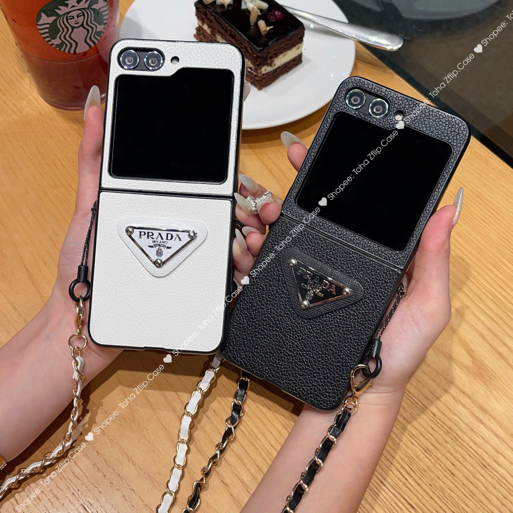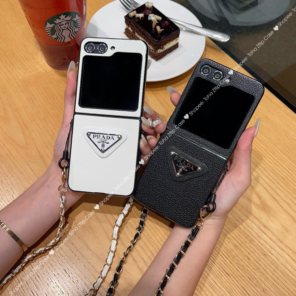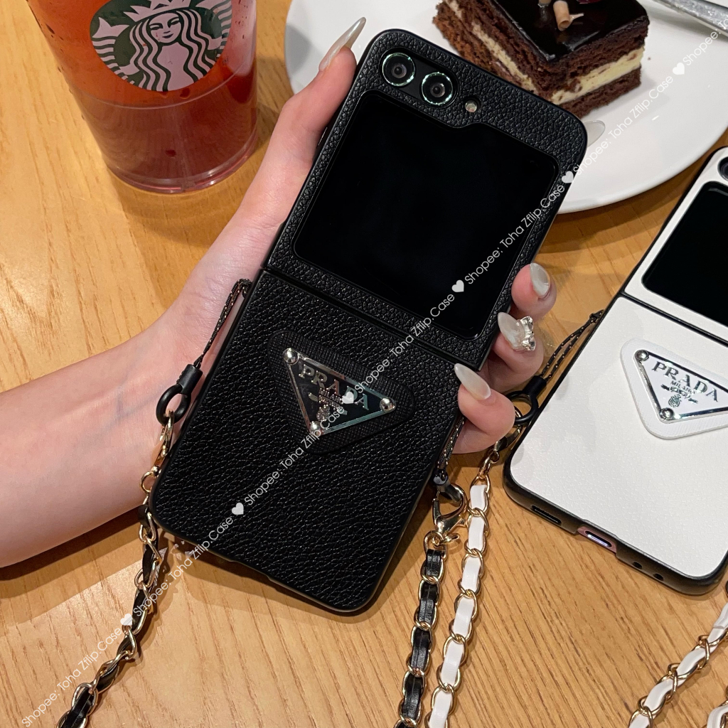 Samsung Z Flip 5 Lumpy Leather Luxury Case With ZFlip5 / Z Flip5 Cross Roof Strap