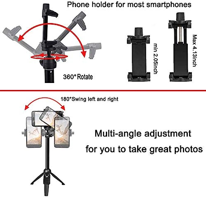 【Adjustable Angle and Rotatable Phone Holder】: 360°Rotatable Phone Holder and 180° Rotation Head allow you could take photos, video call or live broadcasting.