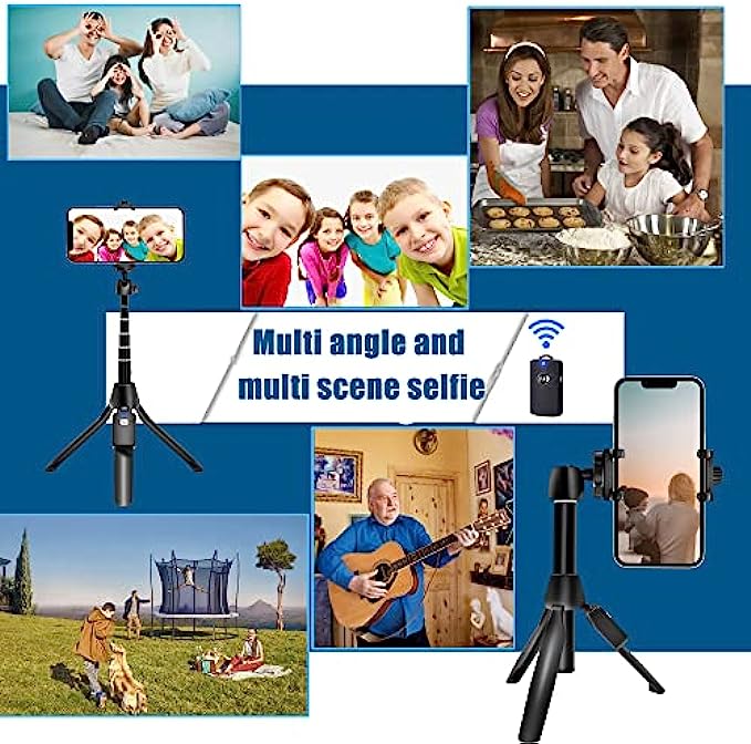 【3-In-1 Selfie Stick and Tripod Stand】Selfie stick tripod can be extended between 8.07 to 40 inches, which makes it very suitable for Photograph, Face time, Business, living broadcasting more. It features a fully expandable handheld selfie stick handle with built-in collapsible legs that allow it to double as a stand-alone tripod when opened. You can easily switch between Selfie Stick Mode & Phone Tripod Mode for your preferred use.