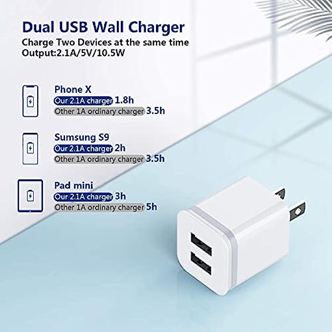 • Package includes: LUOATIP 3-Pack Dual Port USB wall charger block.