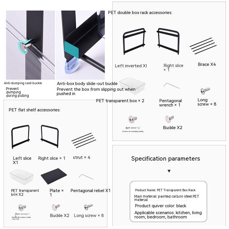 Under-sink pull-out shelf cabinet shelf kitchen spice bathroom cabinet kitchen cabinet multi-drawer storage shelf UQRN